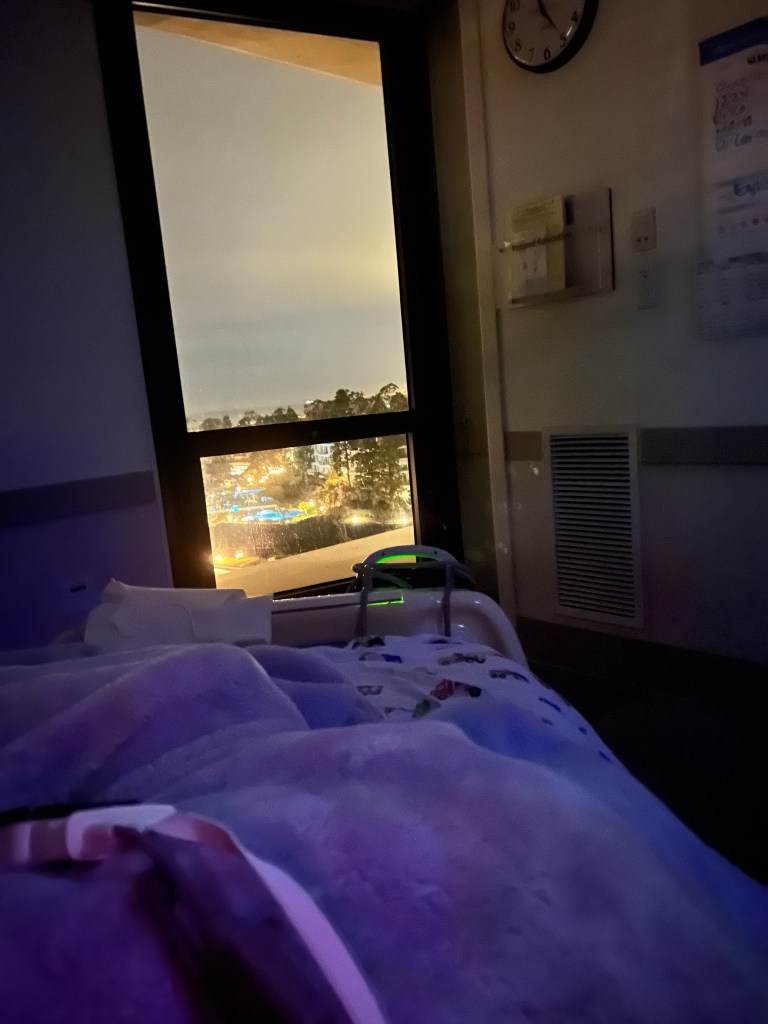 4:08am Because of the infection, seizure and drop in stats – I’m being watched a bit more closely. My pee hat is back on the toilet to monitor output and samples are being taken. So instead of the 10pm – 5am split at night – I’m at every 4 hours – sleep is a little less now. So after my 9:30pm meds – I drifted to sleep with my ear plugs and passed out. Nurse Iz came in at the scheduled time but I was so passed out that I didn’t even know where I was or what was happened. She literally scared a fart out of me! Thank God I had peed and pooped before bed because my BM situation is NOT reliable. I gasped and J woke up asking “What’s going on?!” Nurse Iz said my face said it all. I looked like a deer in headlights just…. DUH. So home invaders, just take the stuff cause I’m just DUH…not a good look at all! Clearly zero survival instincts. I would fart and stare. SMH.
