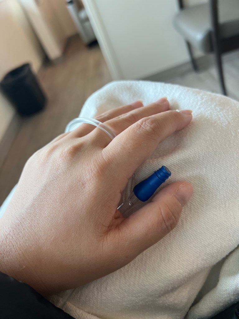 I was always paranoid the IV would get kinked and if my left arm wasn’t perfectly straight – Kevin would beep like a psycho. But it was a security blanket, seems like it still is. Feeling tired at lot sooner this time and very nauseous. Treatment is only 3 hours, but I already stopped drinking water. The sight of it makes me want to dry-heave. I cancelled all my water alarms this afternoon. My mouth is super bitter as well. Ooof. My mom brought me home and I made it up the stairs to the bed, I won’t be going back downstairs today. I will be laying in bed for the remainder of the day.