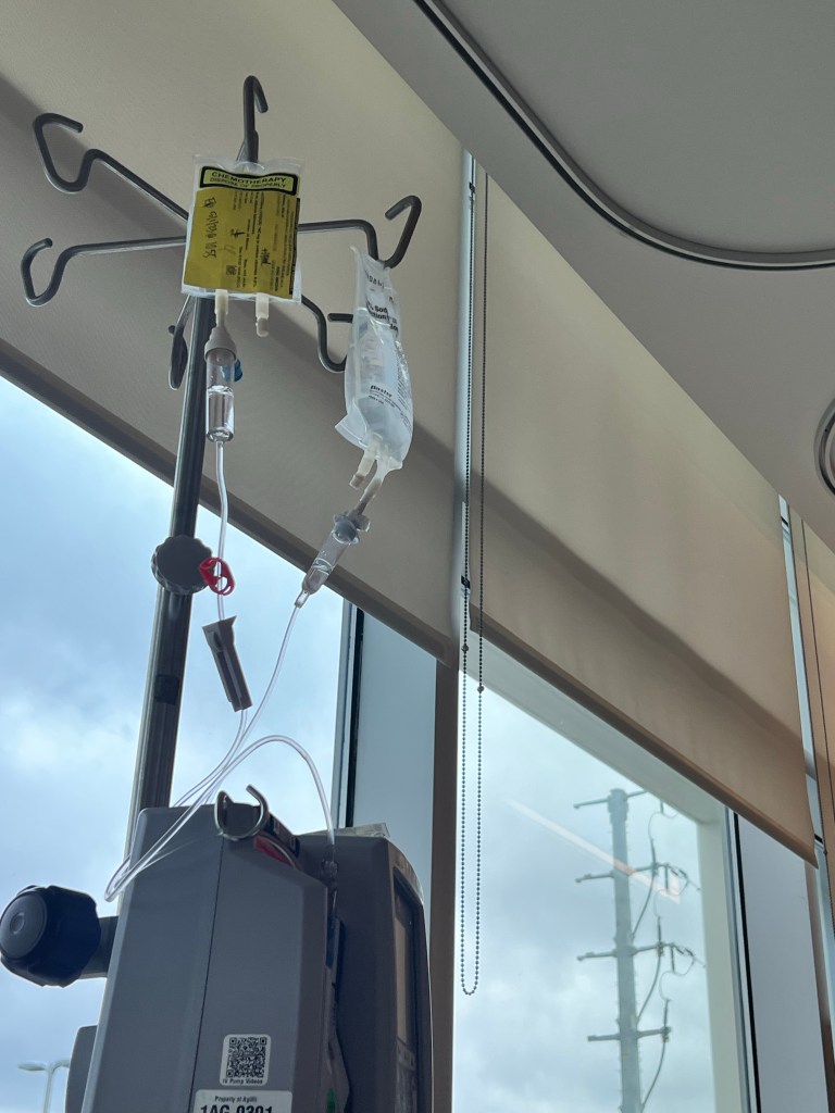 Warm blanket. Pills. Hooked up to IV and New Kevin. I don’t feel strong still. Mindset is all over the place. . I talked to J last night. He asked me why I didn’t feel confident going into Round 2. He asked if it was the pain. I didn’t have a good answer. I just don’t feel strong this time around. My mindset is okay I think, but my body is hurting more and the strength isn’t what it used to be.