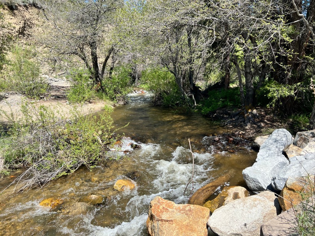 Side note: I hate being the f*cking anchor, the liability…it bothers me that I can’t join the fun as is and that special arrangements need to be made for me. We didn’t go back to the old damn because I couldn’t make it down the rocks, and while gravity is on my side going to the river…gravity would completely work against me on the way up to the road. I was keenly aware I would not be able to make it up. So we went further downstream to find a easier walk to the river.