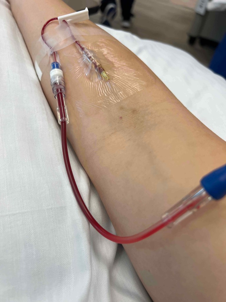 Either time is breezing by or I am so slow. I felt good in the morning. Once I finished cooking it was 1:00pm…what the f*ck I blinked and the time was over. I cleaned up and ate brunch and it was time to head off to chemo. When I spoke to Dr P on 5/24 he said no problem for a reinsertion of the PICC line as I would be on site 5/30 for my biopsy we could just do it there. But I said I would try peripheral IV. Trying to put my big girl panties on. But really it’s nice to shower and have full range of both your arms.