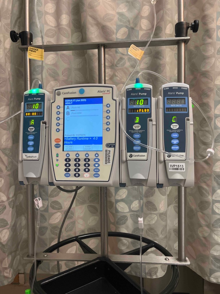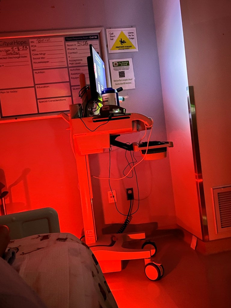 This is my new friend, the one that will keep me hydrated and pump the chemo in me. He’s the one that will keep level when transfusions are needed. Meet, Dave. Unlike his distant cousin Kevin, Dave is thicc and a little brighter in the screen. Though Monica is wayyy the f*ck louder. She is clearly going through menopause as the fan turns on to cool her down every 15-20 minutes. It’s obnoxious.