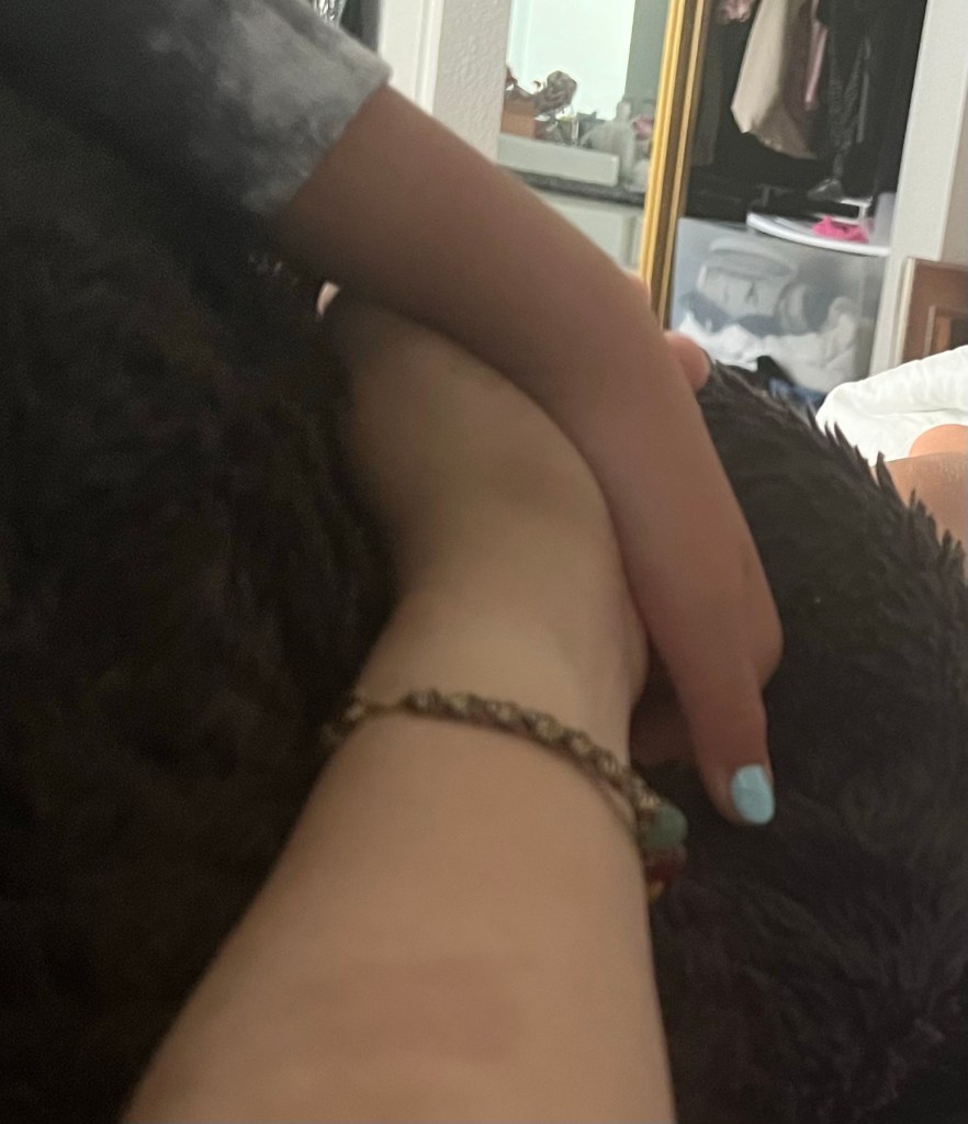 S slept next to me and I woke up a second time this morning at 7:30am to this. There is no greater feeling of love then this. Her little hand in mine. It’s quiet in the house right now. Everyone is still asleep. I’m looking at my hair covered pillow and bedsheets.