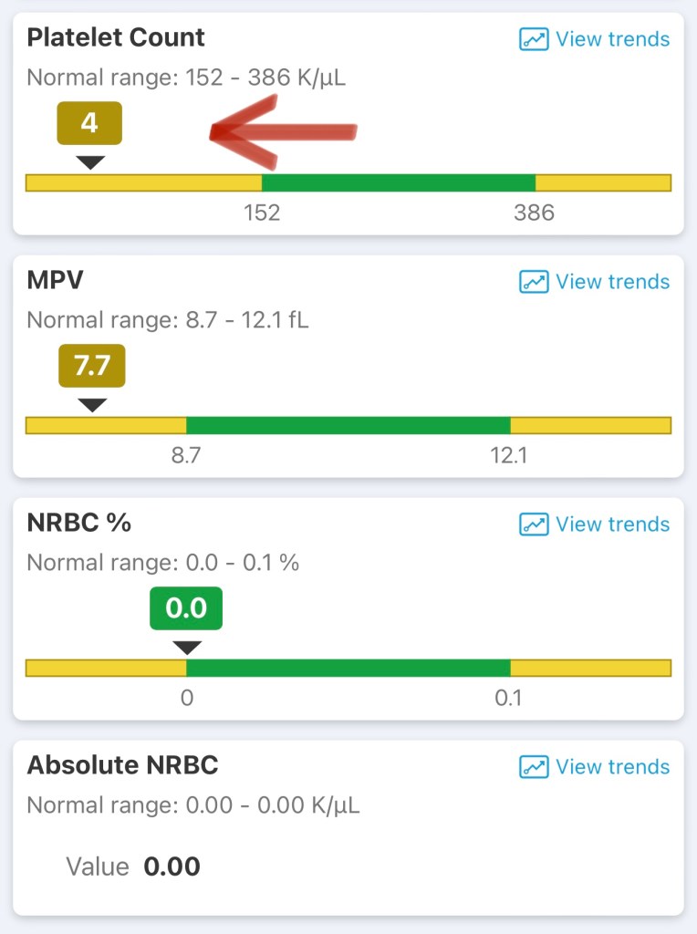 Today was a double header. I needed blood and platelet transfusions. My body is still not stabilizing – my stats are still dropping at fast moving rates. I definitely don’t love that. J left after blood results and went home. I forgot my socks and neck pillow so I wasn’t super comfortable they wake me up 15 minutes after platelets start and Benadryl hits. It makes it difficult to focus.