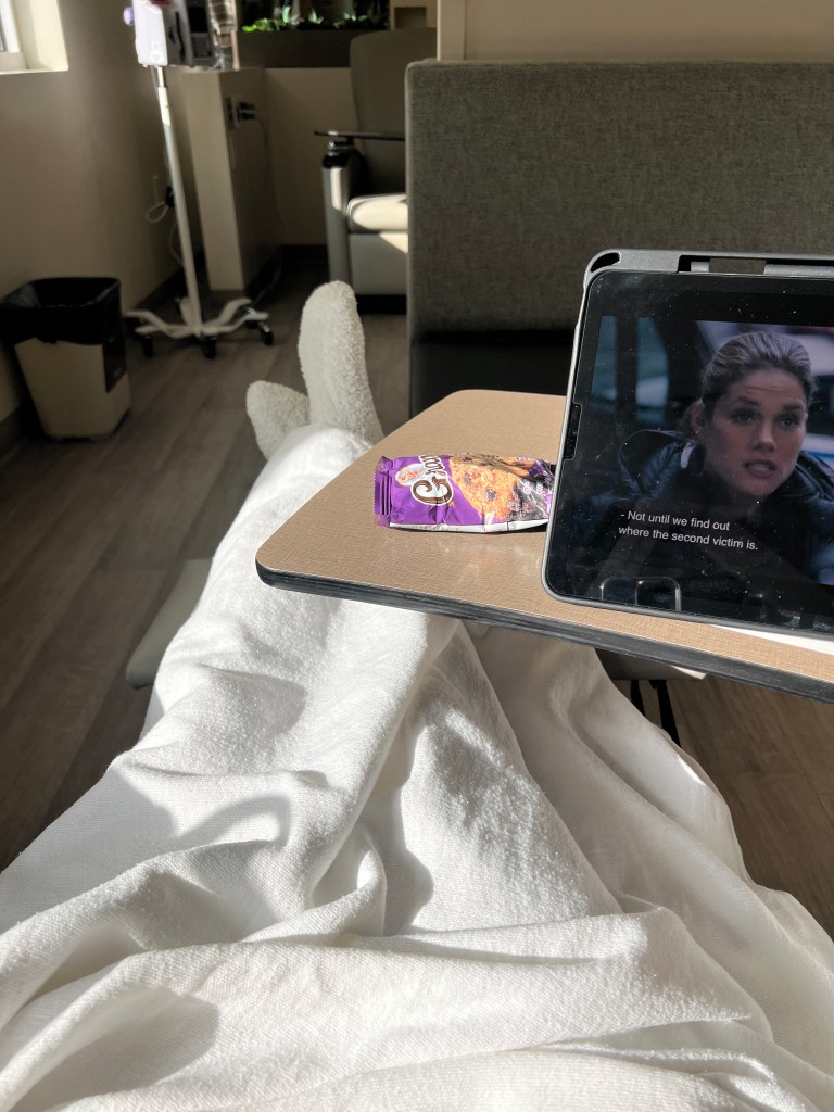 There is something nice about sitting in the sun since these days I can’t be in direct sun. I watch my show and get my hydration. It’s just super early in the morning and sometimes sleeping in would be nice. But then again lately 4:30am has been my “morning” – I try and lay in bed until a more respectable hour before I get out of bed. I don’t know how healthy that is but it’s the current schedule. J and the children have enjoyed a very short trip up north; I wish however they could have stayed longer. I hate that my cancer takes away from their experiences and their fun. My cancer forces them to give up hobbies and sports because I can’t take them anymore.