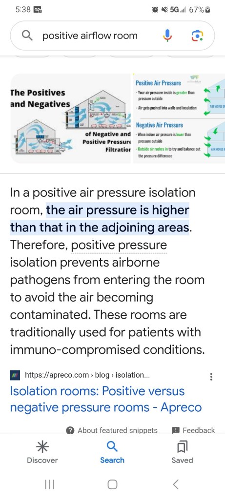 Also playing musical chairs / rooms. Apparently I am in a negative airflow room, and they need me to be in a positive airflow room whatever that means.